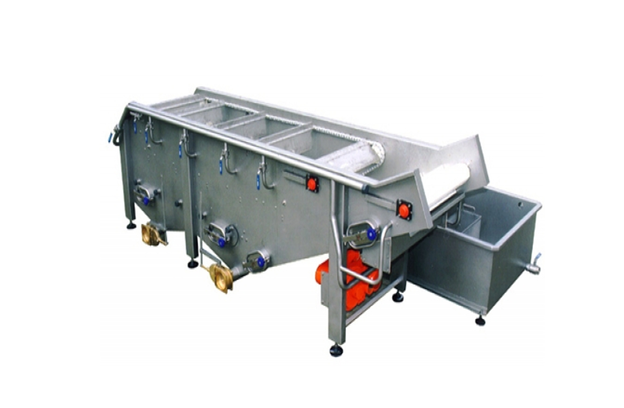 The combination of a water stream with a paddle system makes the washer suitable for floating as well as sinking products. An air agitation system intensifies the washing result.