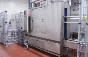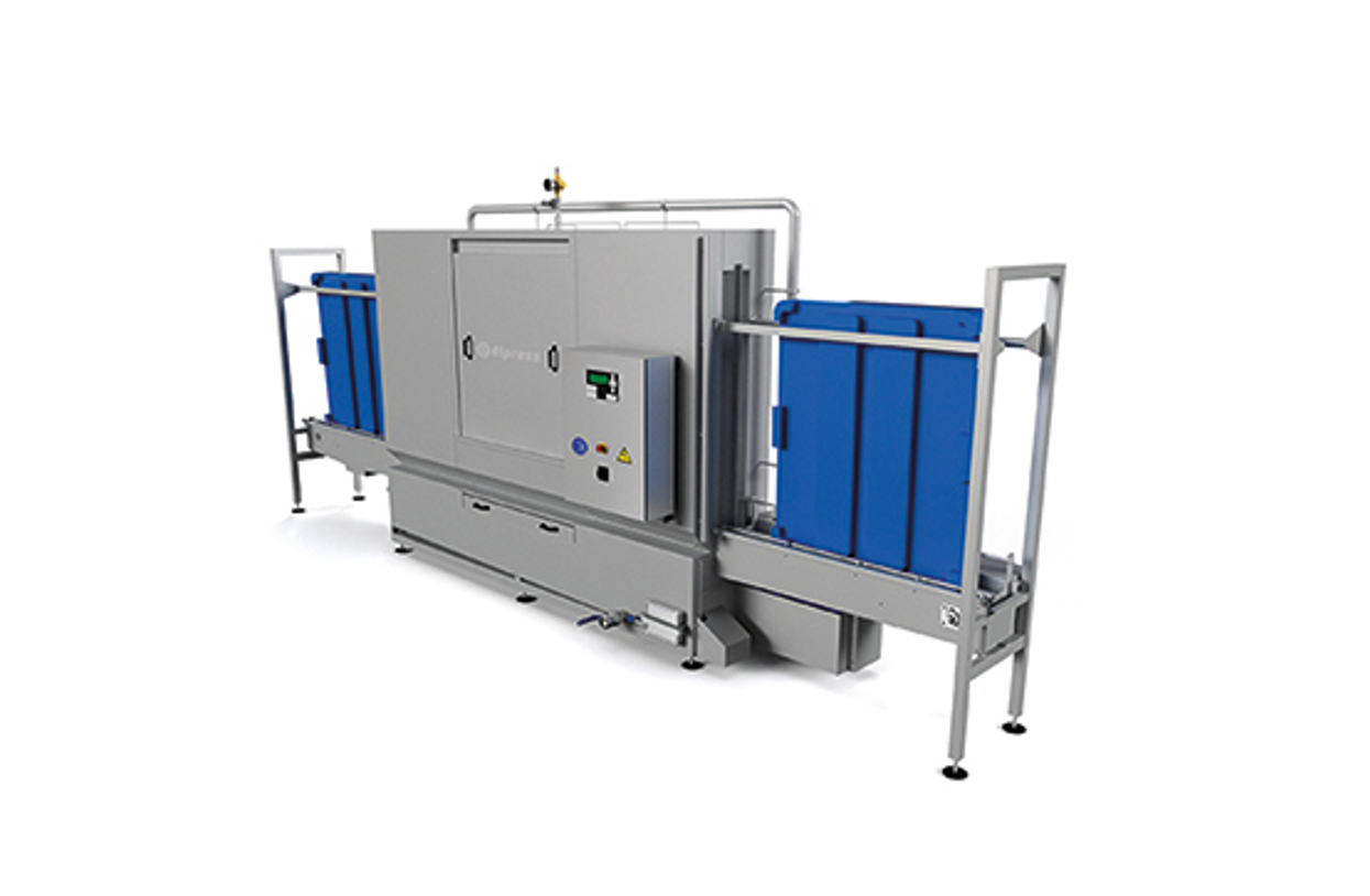 The entire system is constructed out of solid plates and profiles (stainless steel 304) and is placed on adjustable feet. The wash tunnel is accessible by means of removable hatches. The spraying bars are provided with a large number of nozzles and will guarantee an optimum cleaning result. Guiding keeps the pallets in the right position while being cleaned.