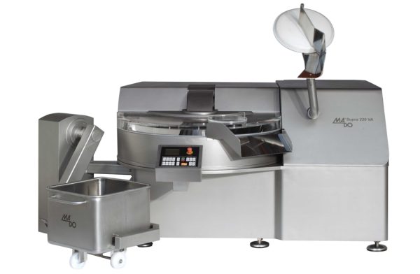 The machine housing is completely closed and features an integrated ventilation system. The complete machine body, all functional parts and the bowl are made of stainless steel, including outlet screw.