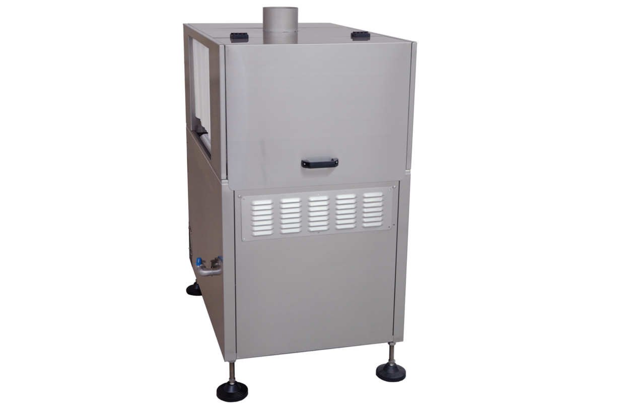 The powerful T 1100 A dryer was designed especially for our vacuum packaging lines. The finished, shrunk vacuum pack is conveyed into the dryer via an automatic conveyor belt immediately after the dipping process. The height-adjustable air nozzle ensures a rapid and clean drying of the shrink packaging.